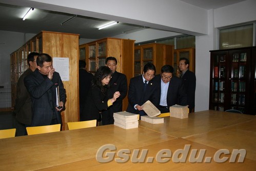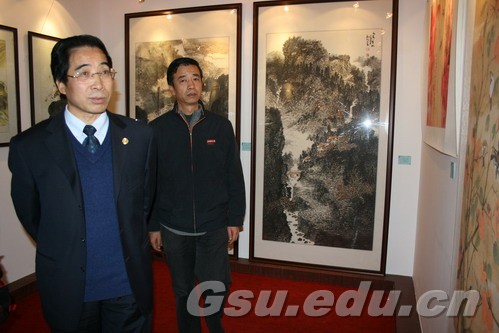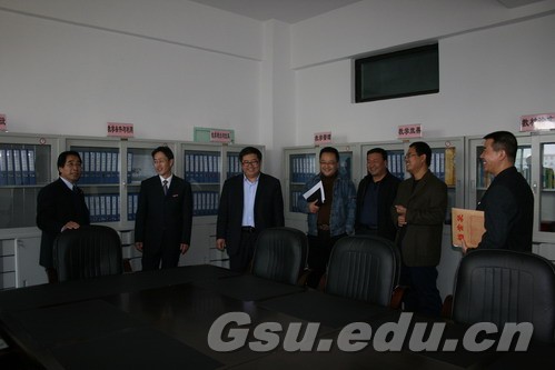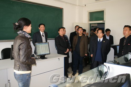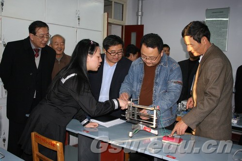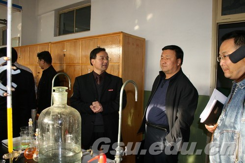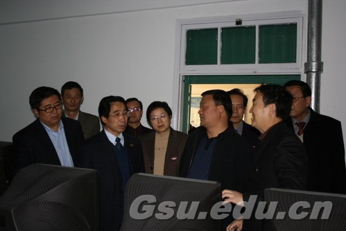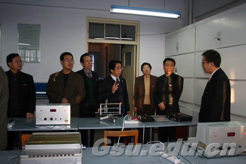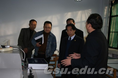 副校长郑伟强给财务处高云庆处长介绍实验室
