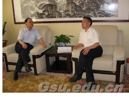 2008年4月27日,校长李志强与吉林大学党委书记陈德文、副书记宫志忠亲切交谈