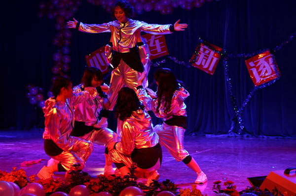 晚会在充满活力动感的爵士舞《把握你的美》中开场。舞蹈《NO NO NO》、现代舞《cry cry》、健美操《火花》、舞蹈《穷开心》活力四射,彰显了大学生的青春个性;话剧《秦始皇选妃》、小品《甄�传》以幽默搞笑的语言,夸张的动作、令人开心捧腹;印度舞《kiss kiss》舞姿优美,展现了异域风情;诗朗诵《脊梁》慷慨激昂,带给人心灵的震撼;民族舞《茉莉花》舞姿绰约,引人入胜;独唱《有多少爱可以重来》、《明天会更好》则带给人听觉得享受;小品《双簧》以精湛的演艺、搞笑夸张的表演将晚会推向了高潮。