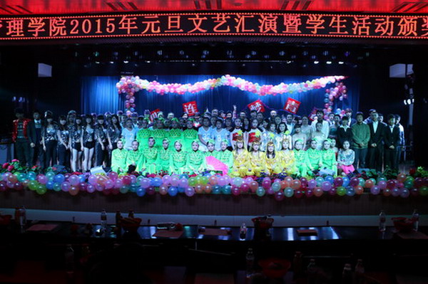 晚会在文艺节目演出中安排了2014年下半年学生活动颁奖环节,分别请到会校外校内嘉宾向模拟就业大赛、主持人大赛、羽毛球大赛、宿舍文化节、“党在我心中”学生支部知识竞赛等9个学生活动项目的获奖集体、学生颁发了奖状、证书和奖品。