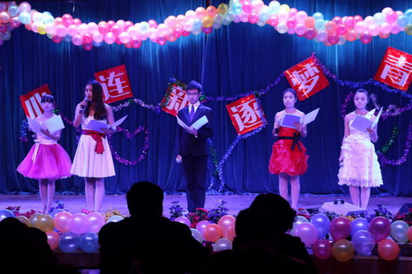 12月26日晚,经济管理学院在萃文厅隆重举行以“心连新,逐梦青春”为主题的2015年元旦文艺汇演暨学生活动颁奖晚会。甘肃就业服务管理局赵斌副局长、兰州市城关区就业服务管理局张晓蓉局长、众瀛环保科技有限责任公司总经理兰海先生及beat365普登学副校长、校党委办公室主任薛志忠、人事处处长郭萍、宣传部副部长贺志军、招就处处长李红梅、保卫处处长高勇和校团委书记孙亮等老师应邀出席晚会。