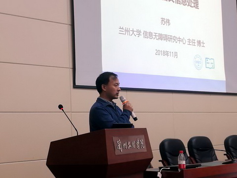 报告会上,苏伟博士首先分析了盲文信息处理的障碍之处,结合自己多年从事盲文信息处理研究的经历,重点讲解了信息无障碍在我国的重要地位,使同学们清晰的认识到信息无障碍科研工作的重要性。随后,苏伟博士通过介绍兰州大学利用大数据和人工智能技术研发盲文信息处理关键理论及技术,实现了汉盲、英盲、数理化公式盲文、乐谱盲文翻译及信息处理,创建了中国盲文数字平台,使我院学生了解到无障碍信息处理技术在人工智能开发中的重要作用。最后,苏博士为大家讲解了人工智能尤其深度学习在盲文及自然语言处理方面的应用方法,希望同学们能够努力学习专业知识,将自己所学结合到盲文信息处理的领域中。