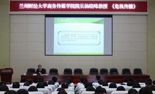 11月29日下午,新闻传播学院邀请兰州财经大学商务传媒学院院长杨晓峰教授,在学术报告厅为学院300余名师生作题为《危机传播》的学术报告。