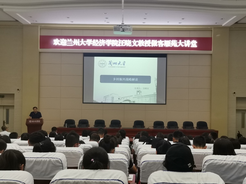 汪教授在讲座开始为师生梳理了乡村振兴战略的理论逻辑与科学内涵,并且阐述了乡村振兴战略的重大意义:实施乡村振兴战略,是党的十九大对过去农村战略的系统总结和升华,既涵盖了以往各个历史时期党的农村战略思想的核心内容,也顺应国情变化,赋予了农村发展以乡村治理体系、农村现代化、城乡融合发展等新的内涵,是社会主义新农村建设思想的进一步升级,也是党为新时代农村发展设定的新目标,提出的更高要求。《中共中央国务院关于实施乡村振兴战略的意见》与《中共甘肃省委 甘肃省人民政府关于实施乡村振兴战略的若干意见》分别是国家与甘肃省对于乡村振兴战略实施的指导意见,汪教授为在座的老师与同学解读了这两份“意见”,指出文件中的关键点,并且结合兰州大学为榆中县设计“乡村振兴战略”规划,向我们展示了如何通过推动乡村产业振兴、乡村人才振兴、乡村文化振兴、乡村生态振兴和乡村组织振兴来真正实现乡村全面振兴。