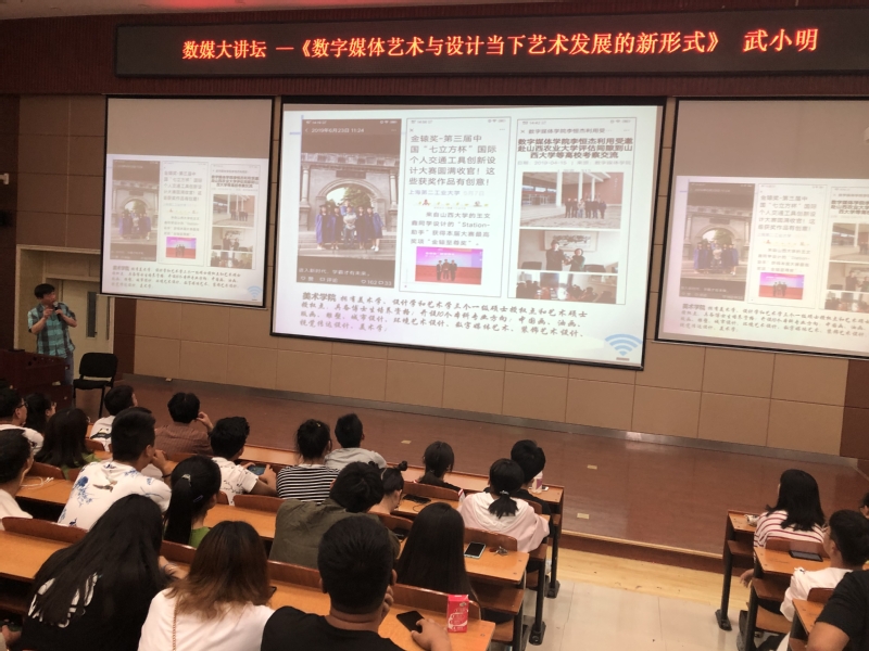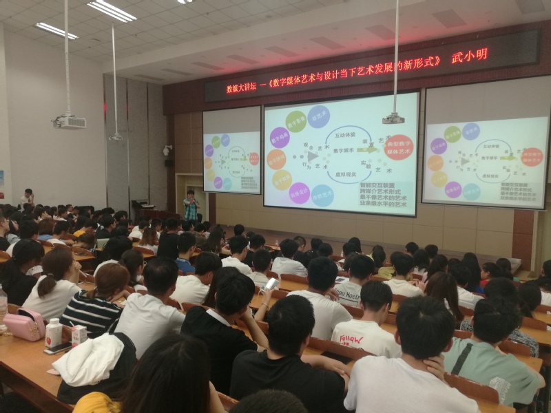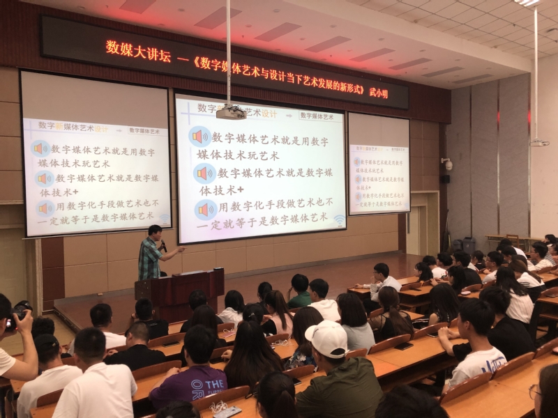 6月29号上午,山西大学美术学院数字媒体艺术系主任武小明教授走进beat365数字媒体学院数媒大讲坛,作了题为“数字媒体艺术与设计,当下艺术发展的新形式”的主题讲座,数媒学院17级、18级全体学生近300人聆听了此次讲座。