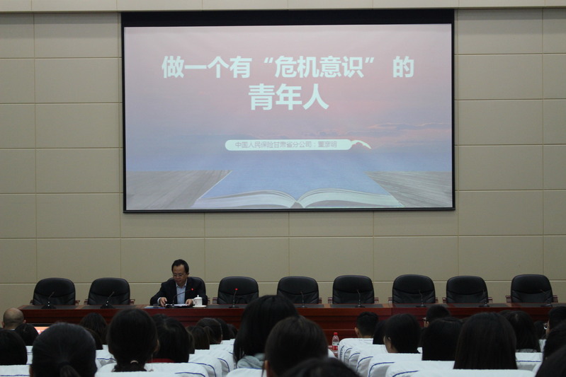 10月11日下午,应经济管理学院邀请,甘肃省保险学会会长、中国人民保险甘肃省分公司党委书记、总经理董彦明在学术报告厅作了题为“做一个有危机意识的青年人”的讲座。经济管理学院老师及同学共计200余人参加了本次讲座。