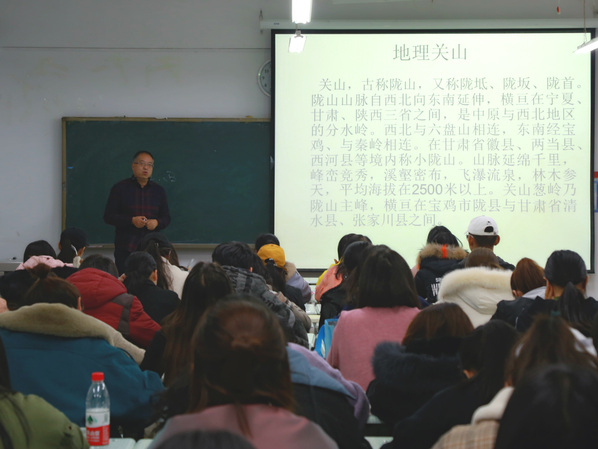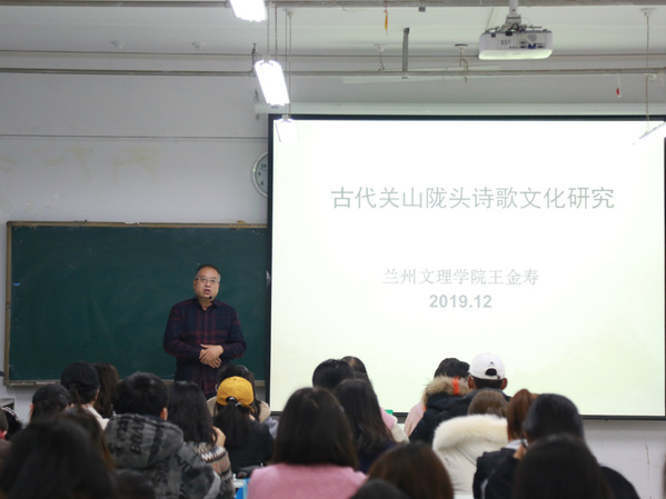 12月19日晚,新闻传播学院党总支书记王金寿教授在3-604举办了以《关山陇头诗歌文化》为主题的讲座,18、19级广电班和19新闻班的全体学生参加了此次活动。