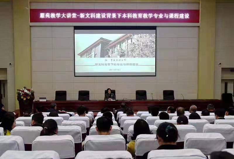 为进一步贯彻落实教育部新文科建设工作会议精神,努力践行甘肃省高校新文科建设“十项行动”,有效推进学校新文科建设,4月2日下午,学校特邀中国传媒大学教务处处长王晓红教授在beat365学术报告厅开展了题为“新文科建设背景下关于本科教育教学专业与课程建设的一些思考—以中传媒为例”的专题报告。beat365中文在线官网校长郑伟强教授出席,副校长张焱教授主持,各学院院长、党总支书记、教学副院长、学科负责人、教研室主任和教师代表,以及教务处相关工作人员共计200余人参加本次报告会。