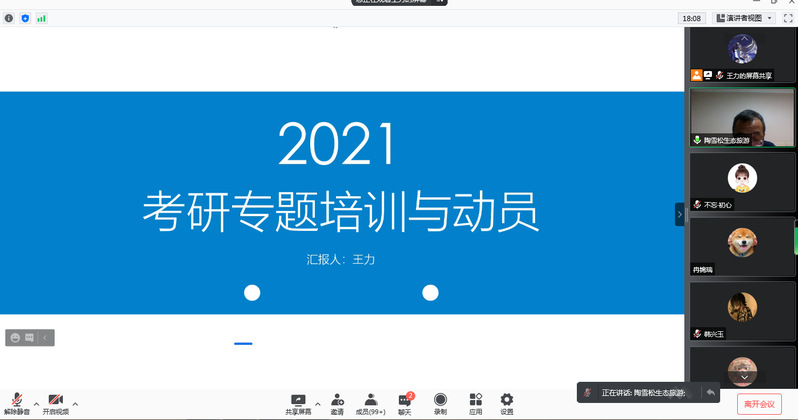 为进一步提升我院本科毕业生研究生报考率和升学率,结合当前疫情防控工作需要,2021年11月2日,我院邀请了西北师范大学旅游学院副院长王力博士、副教授,通过腾讯会议作了题为《考研专题辅导与动员》的在线考研辅导讲座。讲座由MTA教育中心(筹)主任陶雪松教授主持。学院教师代表、旅游管理(本)、酒店管理(本)、航空服务艺术与管理专业全体本科学生共500余人进行了在线收听。