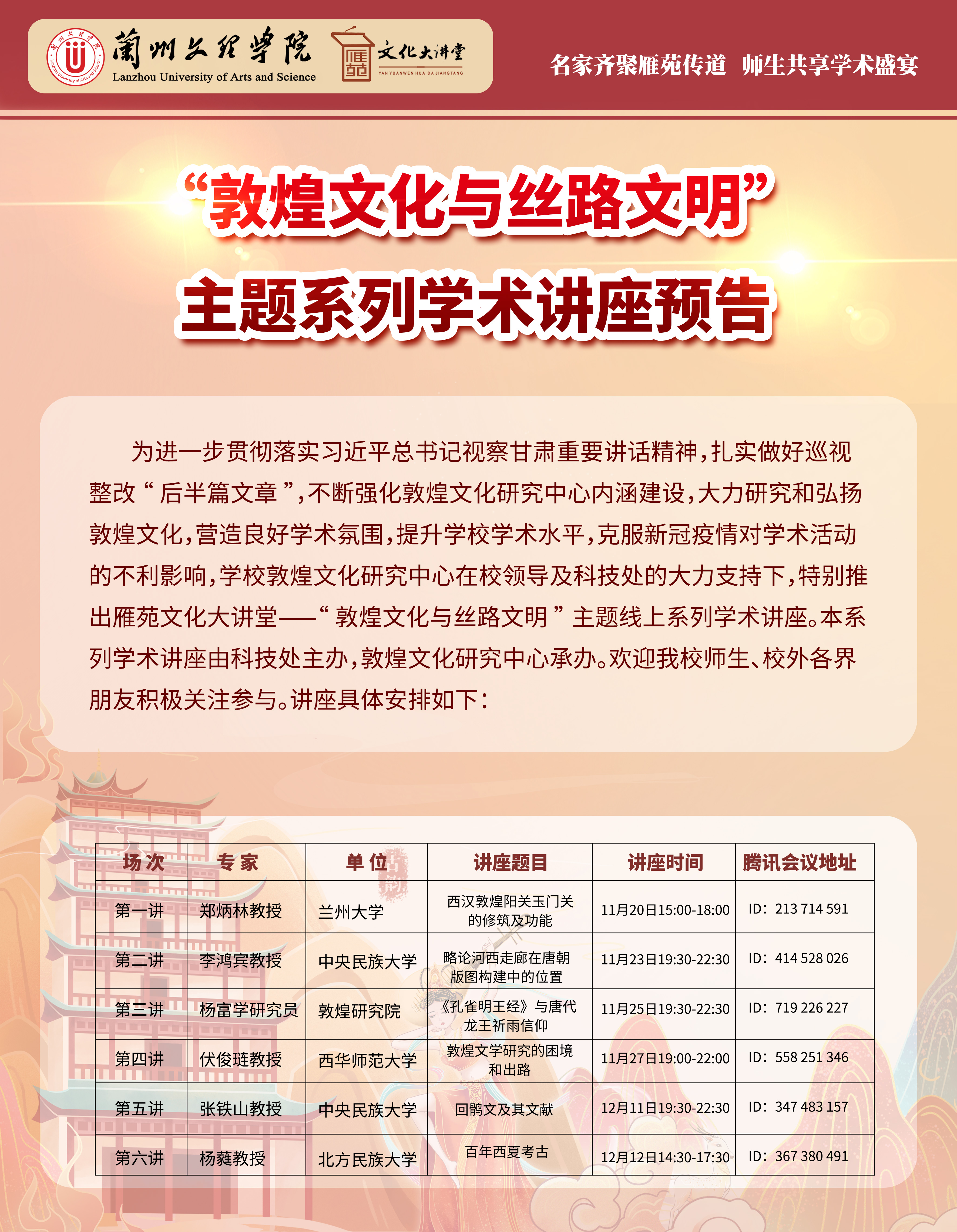 雁苑文化大讲堂——“敦煌文化与丝路文明”主题系列学术讲座预告
