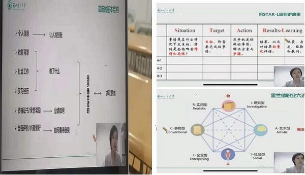 其次,马老师以流程图的形式把简历的基本机构以及简历撰写呈现给大家,利用霍兰德职业六边形来为大家呈现出制作简历过程中的一些问题,用STAR–L原则讲故事,呈现出了一幅幅简明易懂的画面。