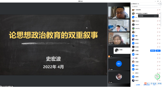4月14日下午,由马克思主义学院与科技处、党委宣传(统战)部联合举办的“习近平新时代中国特色社会主义思想雁苑大讲堂”活动开讲。活动邀请上海交通大学马克思主义学院史宏波教授作了题为“论思想政治教育的双重叙事”的学术报告。报告会由马克思主义学院挂职副院长张哲副教授主持,线上线下共有300余教师、学生参加此次报告会。