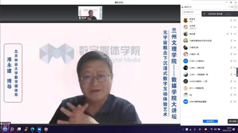 为进一步加强数字媒体学院专业学科建设,加深学生对元宇宙概念了解,学院于2022年5月23日晚举办数媒大讲坛线上学术讲座,邀请北京林业大学数字媒体系淮永建教授,为学院数字媒体技术和艺术专业做了题为“元宇宙概念下沉浸式数字互动体验艺术”的报告,报告由数字媒体学院院长李恒杰教授主持。