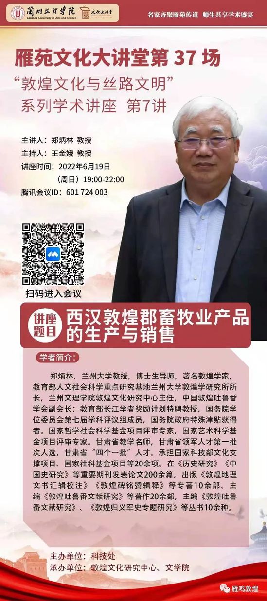 雁苑文化大讲堂——“敦煌文化与丝路文明”系列学术讲座第7讲(总第37场)通知