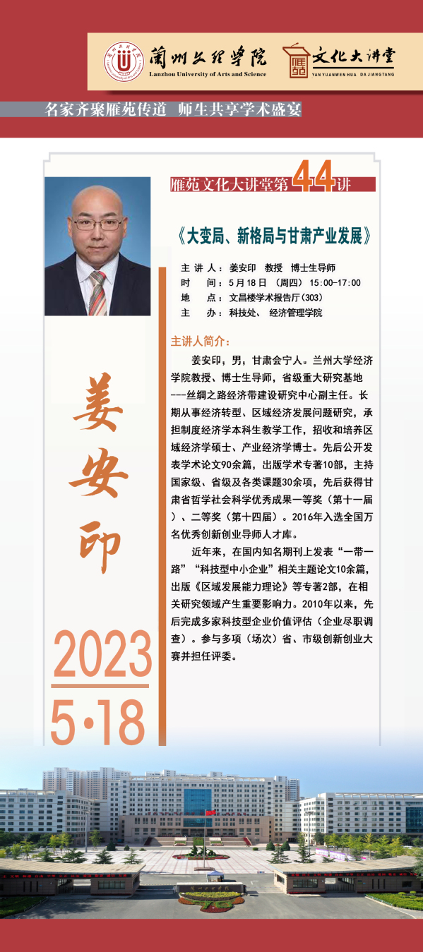 雁苑文化大讲堂——《大变局、新格局与甘肃产业发展》讲座预告(总第44场)