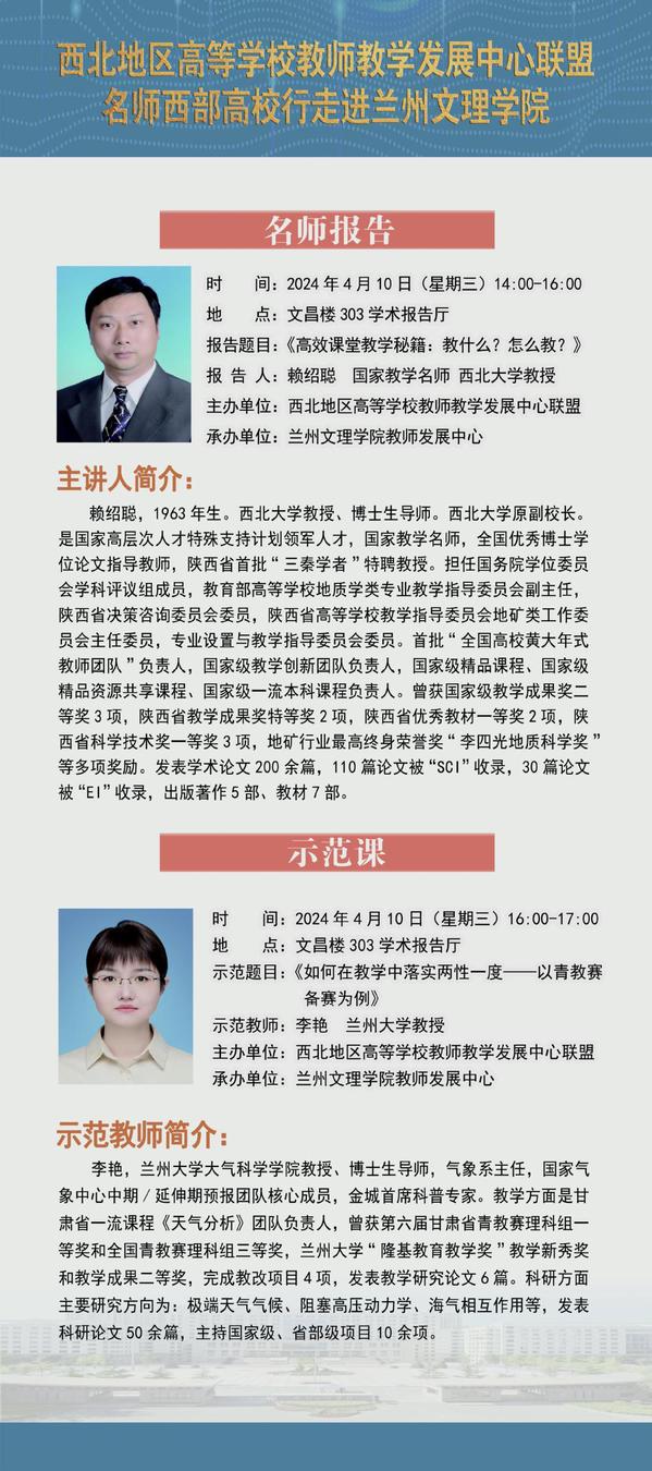 西北地区高等学校教师教学发展中心联盟名师西部高校行(beat365中文在线官网)活动预告