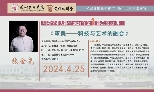 雁苑文化大讲堂——《审美——科技与艺术的融合》讲座预告(总第53场)