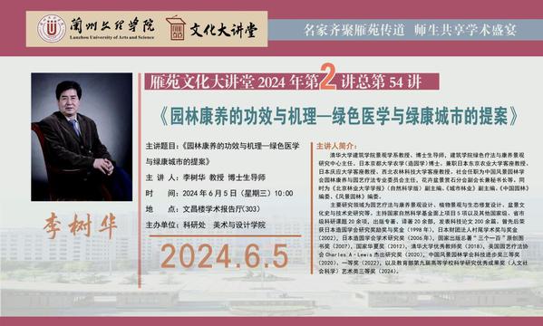 雁苑文化大讲堂—《园林康养的功效与机理—绿色医学与绿康城市的提案》讲座预告(总第54场)