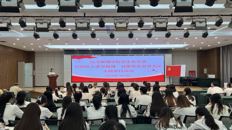 7月1日下午,经济管理学院学生党支部在文昌楼3楼多功能厅集中开展“弘扬伟大建党精神,凝聚青春奋进力量”预备党员宣誓主题党日活动。院领导、学生党支部全体党员共100余人参加。