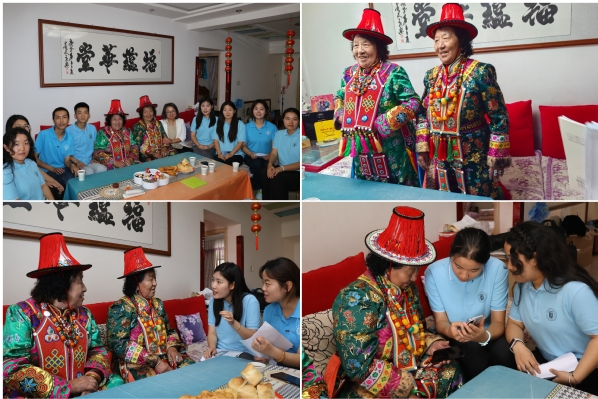 推普促交流,非遗展魅力。实践团一行拜访了裕固族国家级非遗传承人柯璀玲老师。在柯老师的私人博物馆——裕固族民俗博物馆内,柯老师用流利的普通话向大家讲述了每一件展品背后的故事。现场交流中,柯老师分享了与非遗的不解之缘,以及她在保护和传承非遗过程中的坚持与付出。实践团成员还就裕固族文化和非遗传承中的困境与柯老师进行了深入交流,共同探讨了普通话在非遗传承中的重要作用。