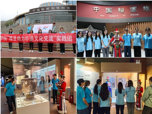 以史观文,非遗亮色。实践团参观了中国裕固族博物馆。通过中国裕固族、和谐家园、肃南自然资源、肃南历史文化四个展厅的展陈,全面了解了裕固族的历史发展、迁徙路径、民族文化、服饰特色、生活习俗及历史文物等。在与工作人员的交流中,同学们深入探讨了裕固族的语言发展、使用现状及汉语普及过程中遇到的问题。