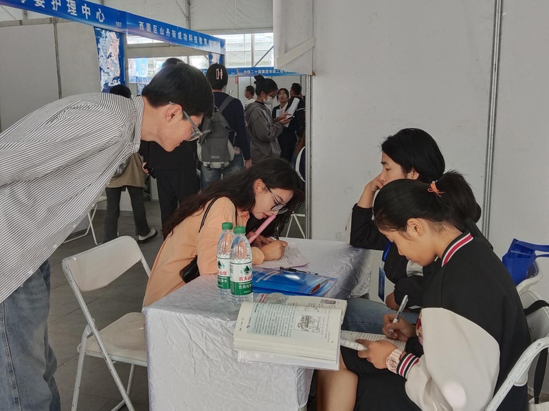 会场内每个企业都有完善的招聘信息,在咨询过程中,招聘工作人员会给求职者详细讲解职业需求和所应具备的就业条件。