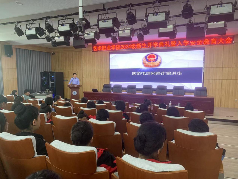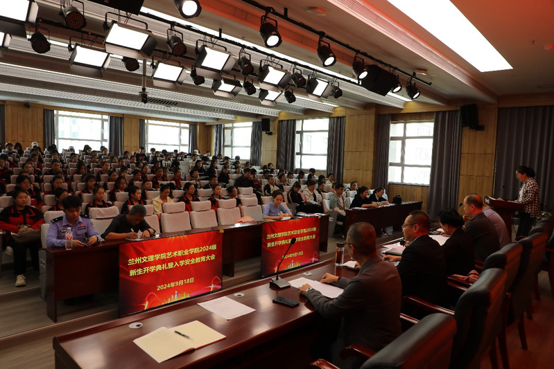 9月18日上午,艺术职业学院在文昌楼学术报告厅开展2024级新生入学教育暨安全知识教育讲座,学院领导班子、各科室负责人、班主任及2024级中职、本科新生参加活动。