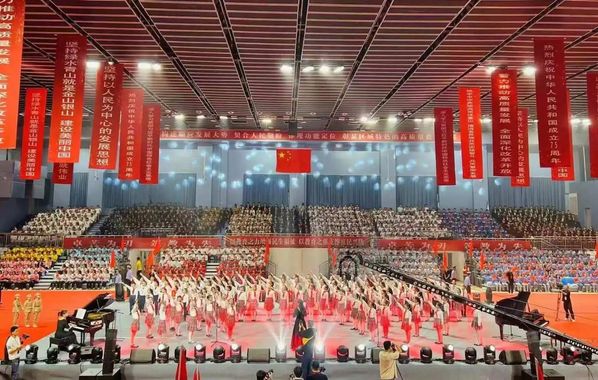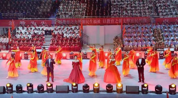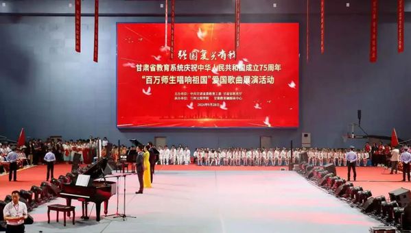 为热烈庆祝中华人民共和国成立75周年,9月28日晚,由省委教育工委、省教育厅主办,beat365中文在线官网、甘肃教育融媒体中心承办的“强国复兴有我”全省教育系统庆祝中华人民共和国成立75周年“百万师生唱响祖国”爱国歌曲展演活动在beat365体育馆顺利举行,在兰19所高校及兰州市师生代表共计2300余人参加活动。展演活动分为《星火燎原》《峥嵘岁月》《青春礼赞》《奔向未来》四个篇章,21支展演团队用真挚的情感和激昂的歌声,表达对祖国母亲的深深祝福,祝愿伟大祖国永远繁荣昌盛。