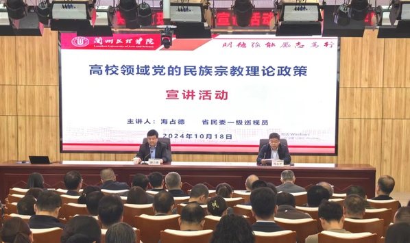 10月18日下午,学校在文昌楼303报告厅举行高校领域党的民族宗教理论政策宣讲活动。省民委一级巡视员海占德到会宣讲,校党委书记苟永平主持会议。