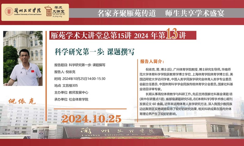 《科学研究第一步:课题撰写》专题讲座预告