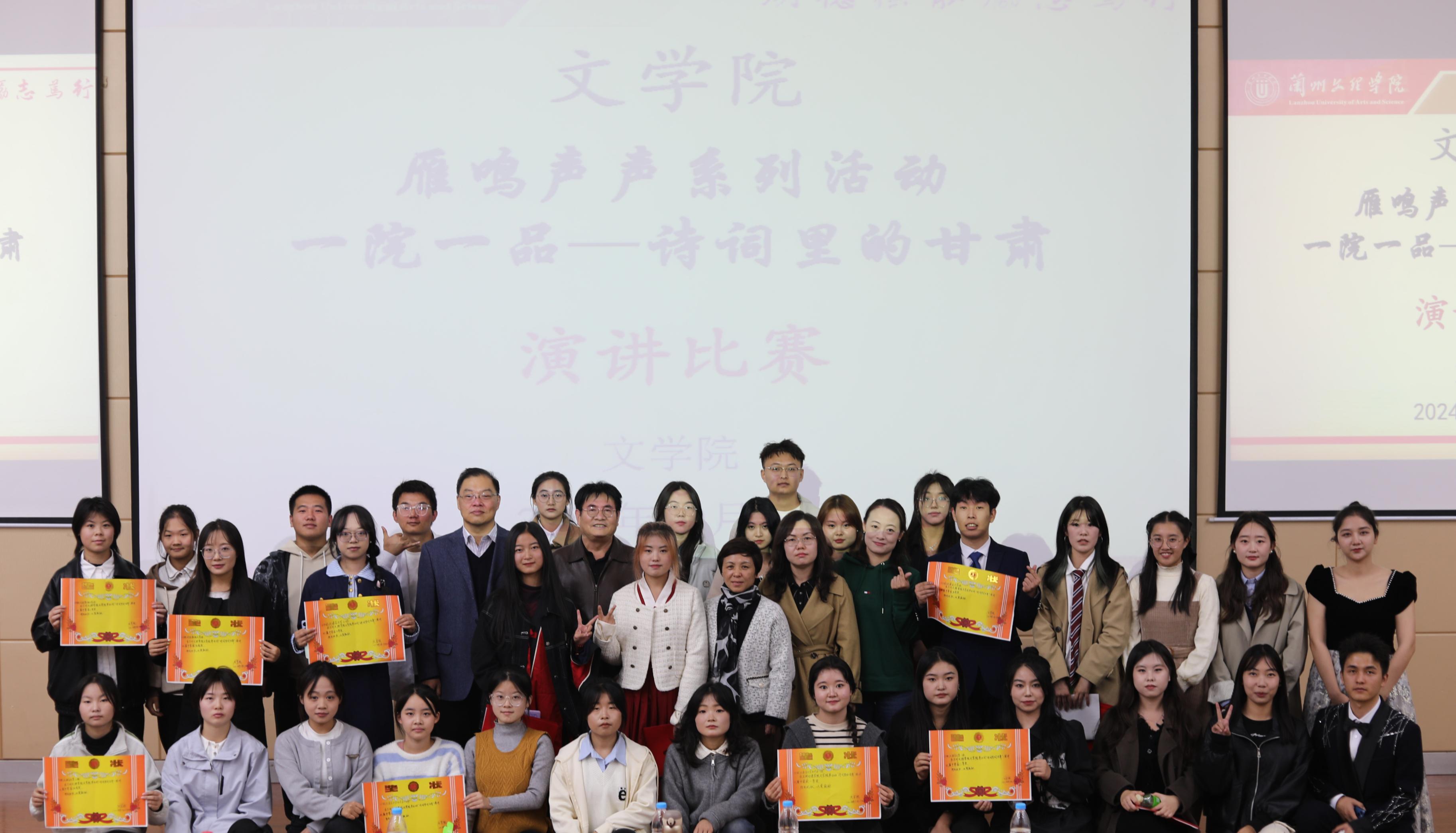 10月24日晚,文学院于5-205举办了文学院“雁鸣声声”系列活动之一院一品——“诗词里的甘肃”演讲比赛。