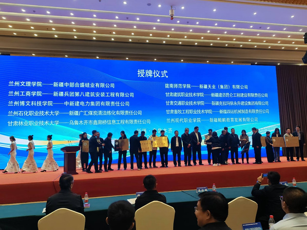 与会期间,李敏骞为校企合作企业新疆中部合盛硅业有限公司授牌。