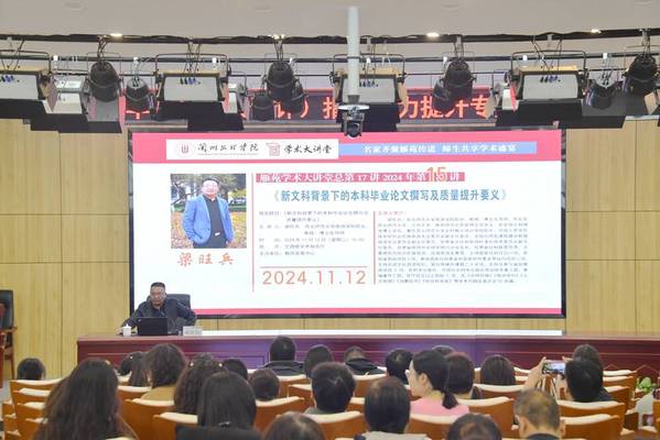 11月12日下午,学校邀请西北师范大学旅游学院院长梁旺兵教授做题为《新文科背景下的本科毕业论文撰写及质量提升要义》的专题辅导讲座。各二级学院教学副院长、教师代表160余人参加讲座。