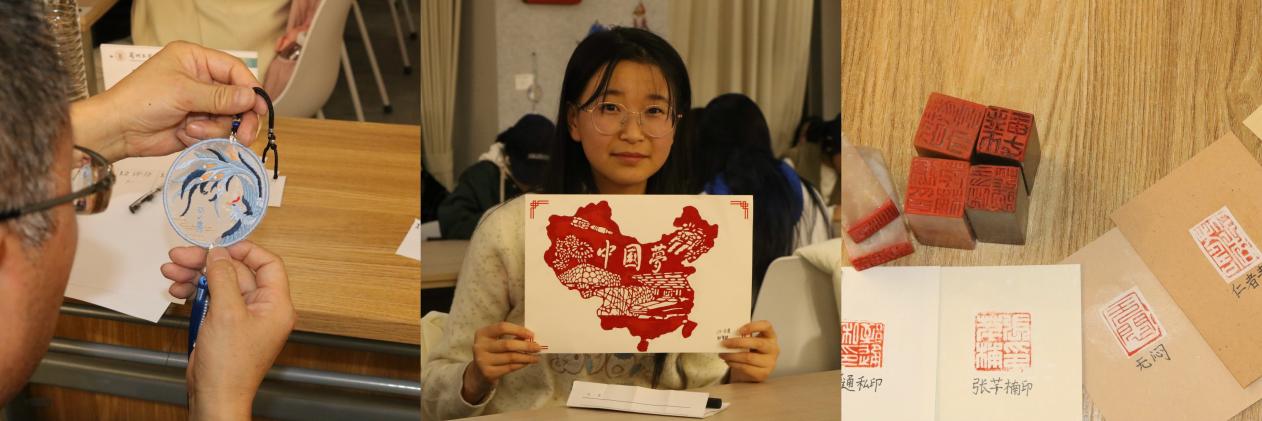 活动现场多种非遗手工艺项目令人目不暇接:细腻的刺绣用丝线勾勒出绚丽图案,灵动的剪纸以纸为画剪刻美好心愿。同学们在实践过程中不但感受到了非遗技艺的魅力,更提高了对于中华优秀传统文化的自信。
