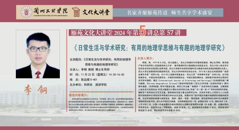 《日常生活与学术研究:有用的地理学思维与有趣的地理学研究》专题讲座预告