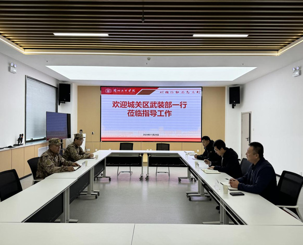 11月28日下午,城关区武装部领导来校检查指导工作。党委委员、副校长张兴辉,城关区人武部部长韦显伦出席会议。人民武装部、校党委学生工作部相关同志参会。