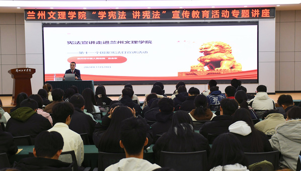 举办主题讲座。11月28日,邀请兰州中院刑二庭庭长白会东在多功能报告厅开展“宪法宣讲进校园”讲座。白会东以法律的概念和历史为切入点,阐述了全面依法治国的重要意义。在解读宪法的历史沿革、序言、总纲以及公民的基本权利与义务、国家机构等内容时,将法学理论与司法案件相结合,将原本抽象的宪法法条转化为与大学生学习、生活息息相关的鲜活事例,使同学们深刻感受到宪法、法律对日常生活的重要影响。