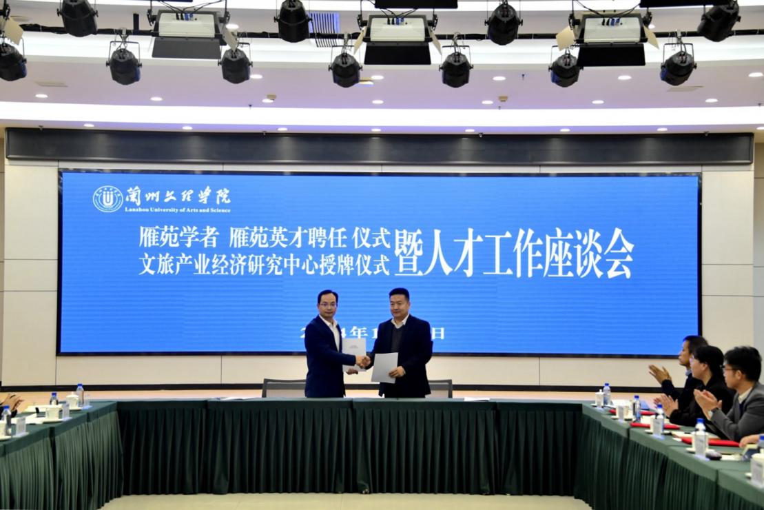12月6日下午,学校举行雁苑学者、雁苑英才聘任仪式、文旅产业经济研究中心授牌仪式并召开人才工作座谈会,党委书记苟永平讲话,常务副校长王顶明主持,校领导班子成员出席。