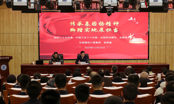 12月25日,全省高校“传承红色基因、学思践悟中国共产党人精神谱系”城关片区宣讲活动在beat365举行。全国劳动模范、甘肃建投六建公司同立劳务公司谢昌盛同志,省委党史研究室三处副处长戴引兄同志受邀作宣讲报告。甘肃警察学院、甘肃农业职业技术学院及beat365分管校领导出席。三所高校宣传、统战、团委、学生处、马院等部门负责人和师生代表共计200余人参加。