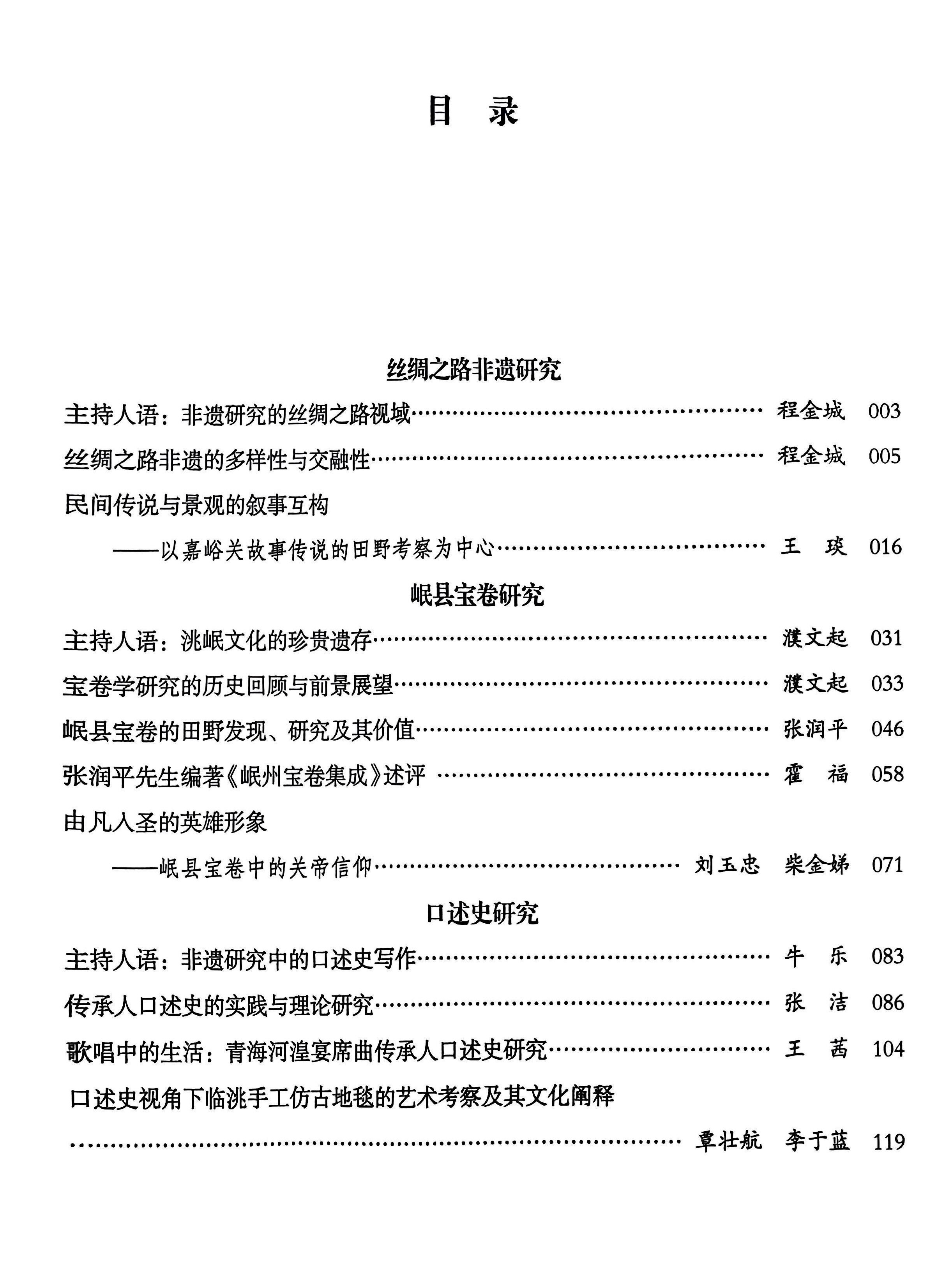 本辑文章选题侧重以甘肃非遗为研究对象,兼及国内外非遗研究。设有丝绸之路非遗研究、岷县宝卷研究、口述史研究、传承人口述史、传统戏剧研究、非遗影像学、非遗保护与传承等专栏,涵盖非遗保护前沿理论、传承实践深度剖析等诸多关键议题。汇聚程金城、麻国钧、濮文起、何川等国内知名学者的 22 篇论文。论丛由beat365中文在线官网文学院、非遗研究院院长叶淑媛教授担任主编。