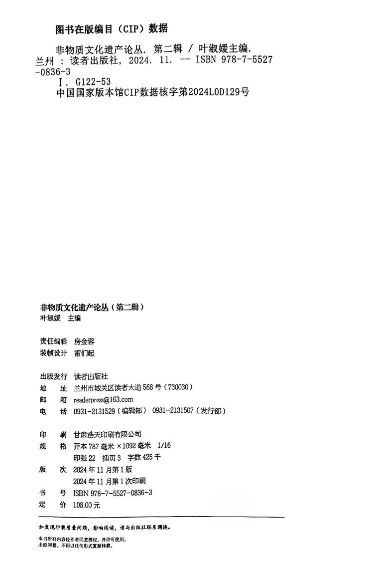 《非物质文化遗产论丛》作为甘肃非遗理论研究的阵地,搭建了非遗理论探索与交流的平台。在2023年出版第一辑之后,得到了众多非遗研究者和非遗保护工作者的认可。大家认为本辑刊不仅为非遗研究领域的学者提供了宝贵的学术资源,更为非遗的保护与传承工作提供了理论支撑与实践指导。