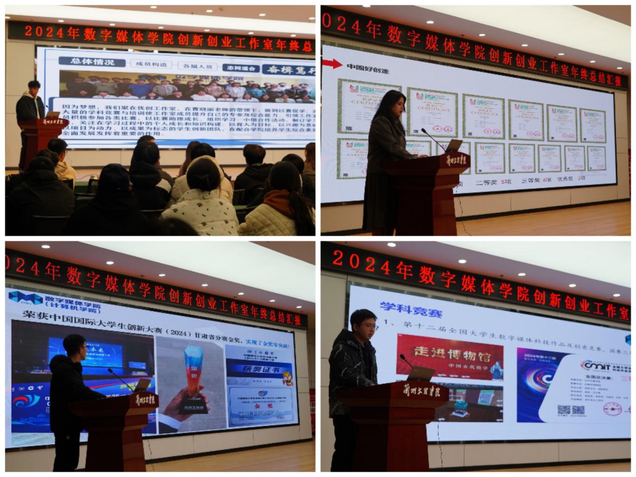 12月30日晚,数字媒体学院(计算机学院)在文昌楼302报告厅成功举办2024年创新创业工作室年终总结汇报会。学院领导、专业教师及工作室全体成员参与此次会议。