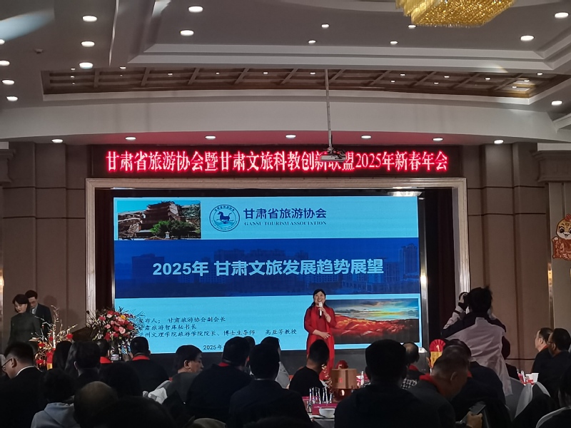 理事会上,旅游学院院长高亚芳教授发布了2025年甘肃文旅十大发展趋势。她指出,文旅行业进入了新时代、新市场和新产业的“大盘时代”,以丰富和立体化的文旅产业体系,以新的动力循环方式,结合“政产学研用”,从同频共振、笃定前行、价值再造、韧性发展、文化爆破、新旧变道、载体创新、“四度”并存、入境发力共十个方面进行了展望,为甘肃省文旅产业未来发展指明了方向。