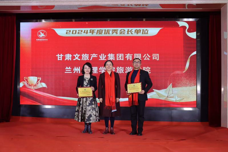 旅游学院作为甘肃省旅游协会副会长单位、旅游教育分会会长单位和旅游教育分会秘书长单位,分别获得了甘肃省2024年度优秀会长单位和2024年度先进个人。