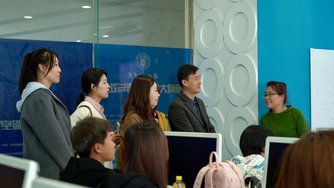 考察团一行首先参观了学院的虚拟演播室、语音分析与网络直播实验室、新闻编辑实验室以及融媒体云平台大数据分析与处理及全景式综合演播厅等专业实验室,观摩了播音主持艺术班的学生播音实训成果展示课,深入了解学院在新闻传播与融媒体教学科研方面的硬件设施建设与前沿技术应用成果。期间编辑记者接受我院学生的现场采访,对学院构建的全方位、多层次实践教学体系给予积极评价,认为学院教学实验设施设备与行业接轨,能为学生专业技能提升奠定了坚实基础。
