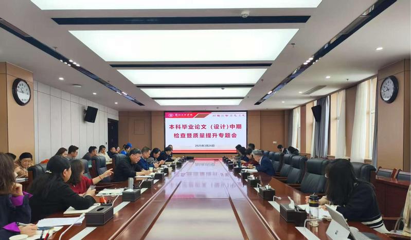 会上,各二级学院汇报了2025届本科毕业论文(设计)中期检查情况,围绕毕业论文(设计)质量提升进行了问题检视、经验总结与交流。教务处、教学质量监控与评估办公室通报了全校中期检查结果和检查中发现的主要问题,并就近三年论文(设计)抽检情况进行了分析,提出了改进建议。