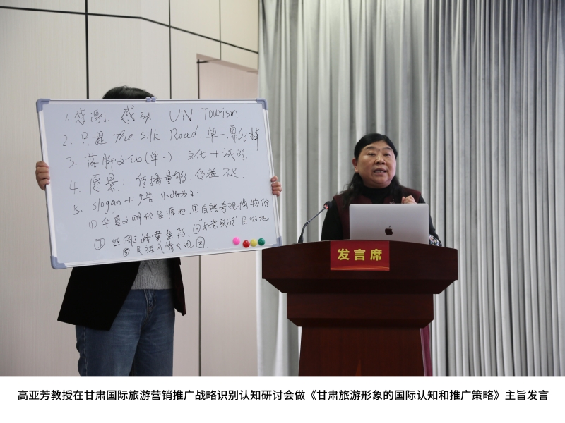 3月12日,甘肃省文化和旅游厅与联合国旅游组织共同举办甘肃省国际旅游营销推广战略认知提升研讨会。旅游学院院长高亚芳教授受邀参加此次研讨会并做了《甘肃旅游形象的国际认知和推广策略》的主旨发言。