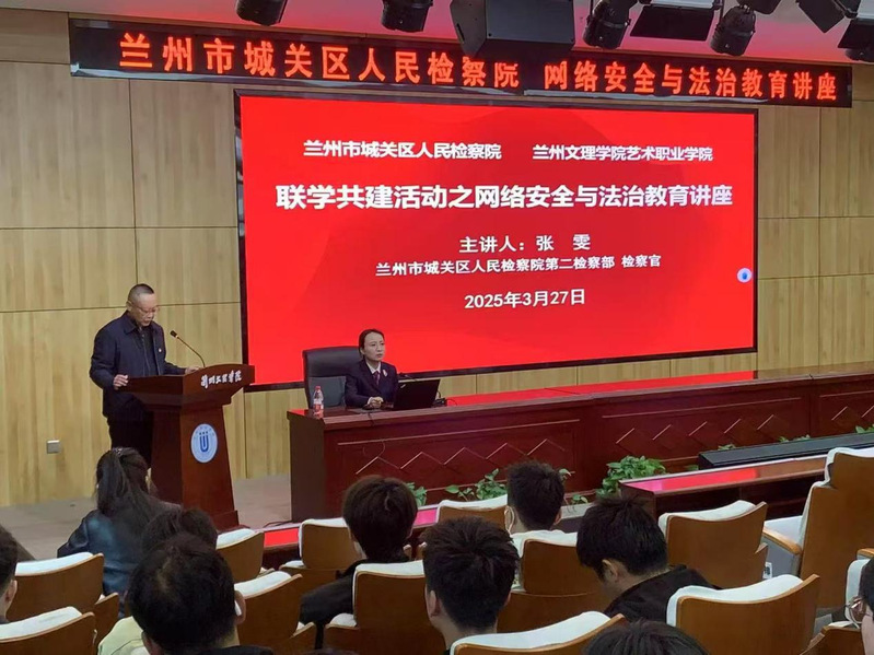 兰州市城关区人民检察院第二检察部检察官张雯以“防范电信诈骗,拒做犯罪‘工具人’”为主题,为艺术职业学院、化工学院300多名师生带来了一场生动的法治讲座。讲座以身边真实案例为切入点,通过讲解分析,提醒同学们要自觉抵制各种不良行为,增强法律意识和法治观念,提高自我防范能力,保持积极乐观向上的心态,努力成为一名崇尚正义、德法兼修,有担当、有责任感的新时代青年。