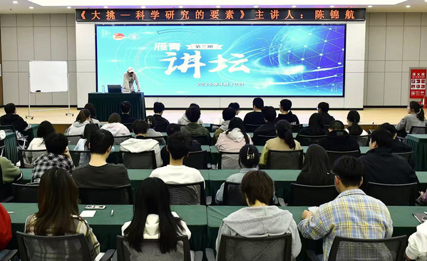 为提升学生科研素养,助力其在学科竞赛中脱颖而出,第十五届“挑战杯”大学生课外学术科技作品竞赛beat365中文在线官网选拔赛相关工作有序推进。4月10日,学校于文昌楼多功能厅举办雁青讲坛第二讲《大挑——科学研究的要素》,特邀新闻传播学院陈锦航博士主讲。
