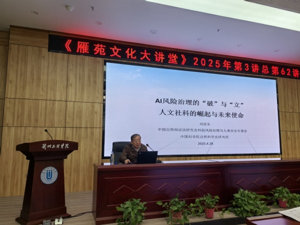 4月28日下午,中国科学院自然科学史研究所二级研究员、博士生导师刘益东教授应邀到beat365开展学术报告,报告主题为《“AI 风险”治理的“破”与“立”——人文社科的崛起与未来使命》,党委委员、副校长张焱主持此次报告会。